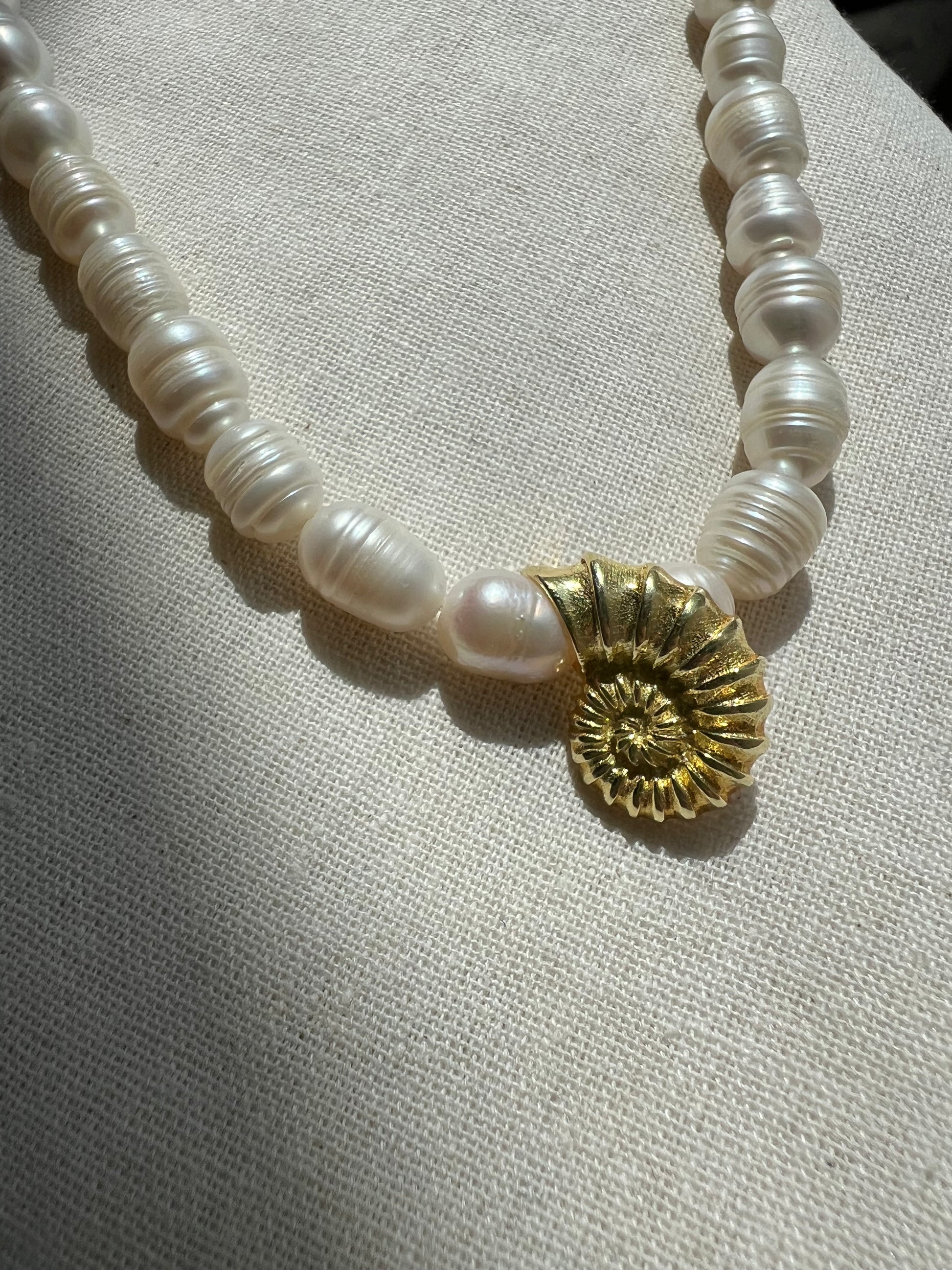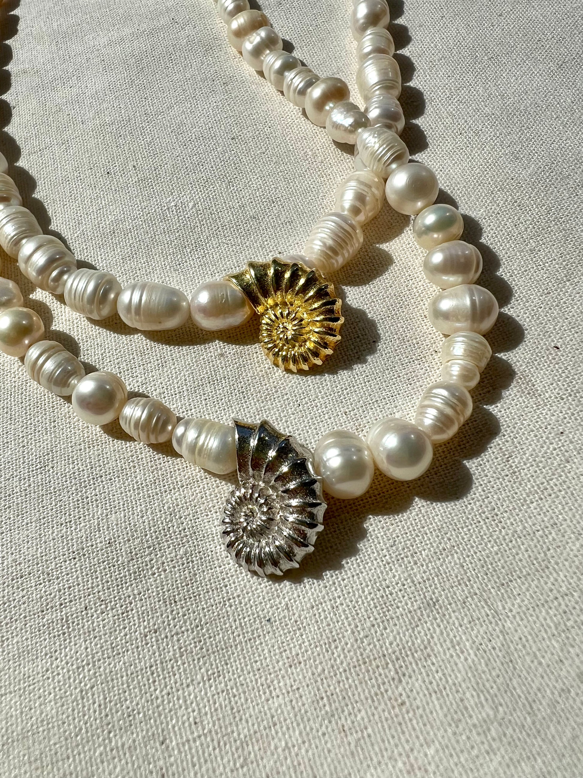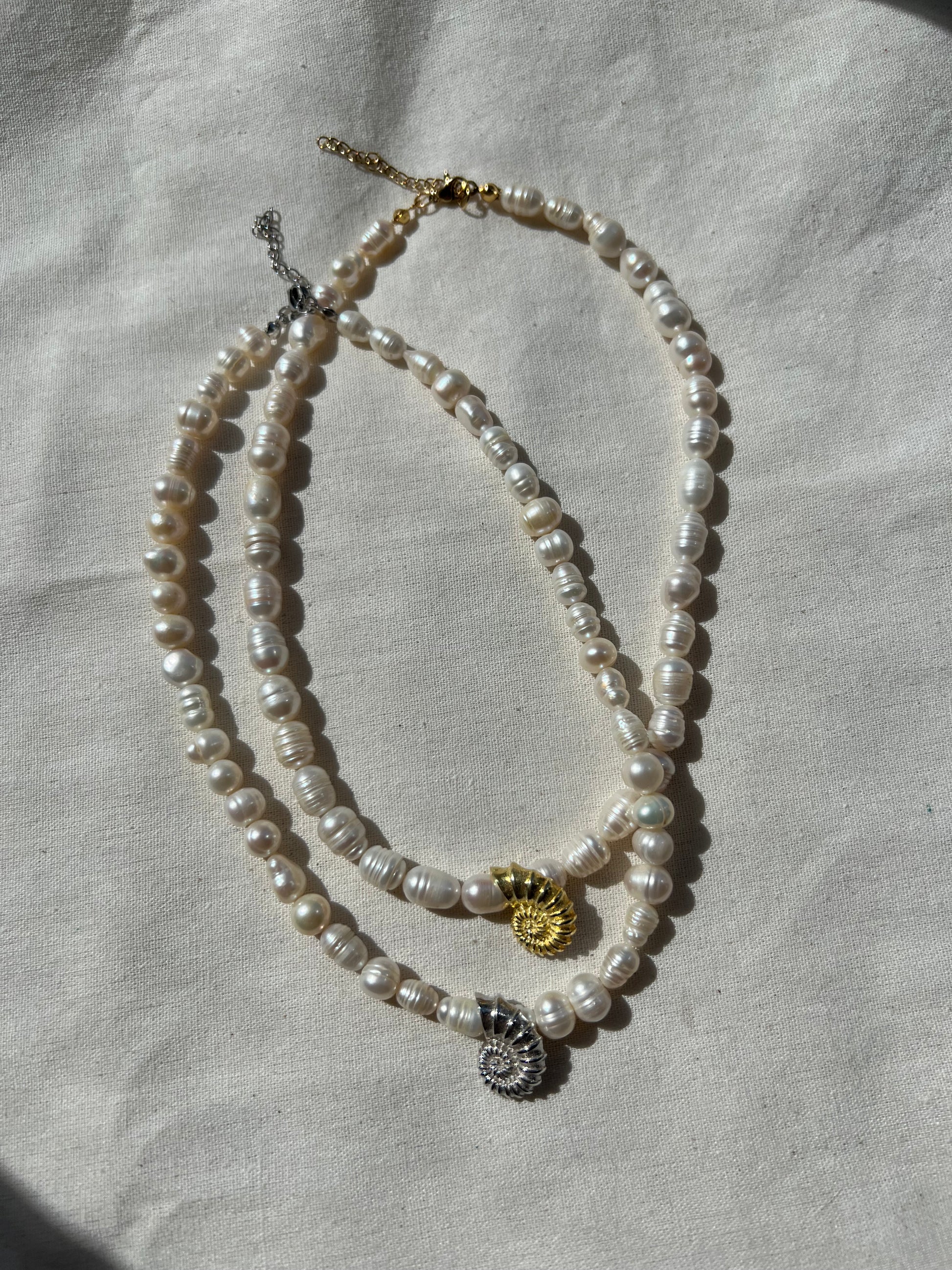 El işçiliğiyle üretilmiştir. Her inci farklı bir form ve dokuya sahip olduğu için, her kolye kendine özgüdür. Deniz kabuğu detayı 925 ayar gümüştür. Siparişinizi verdikten sonra size özel, özenle hazırlanır, 1-3 iş günü içerisinde kargoya verilir.