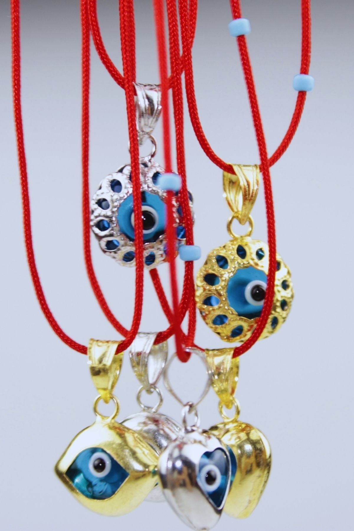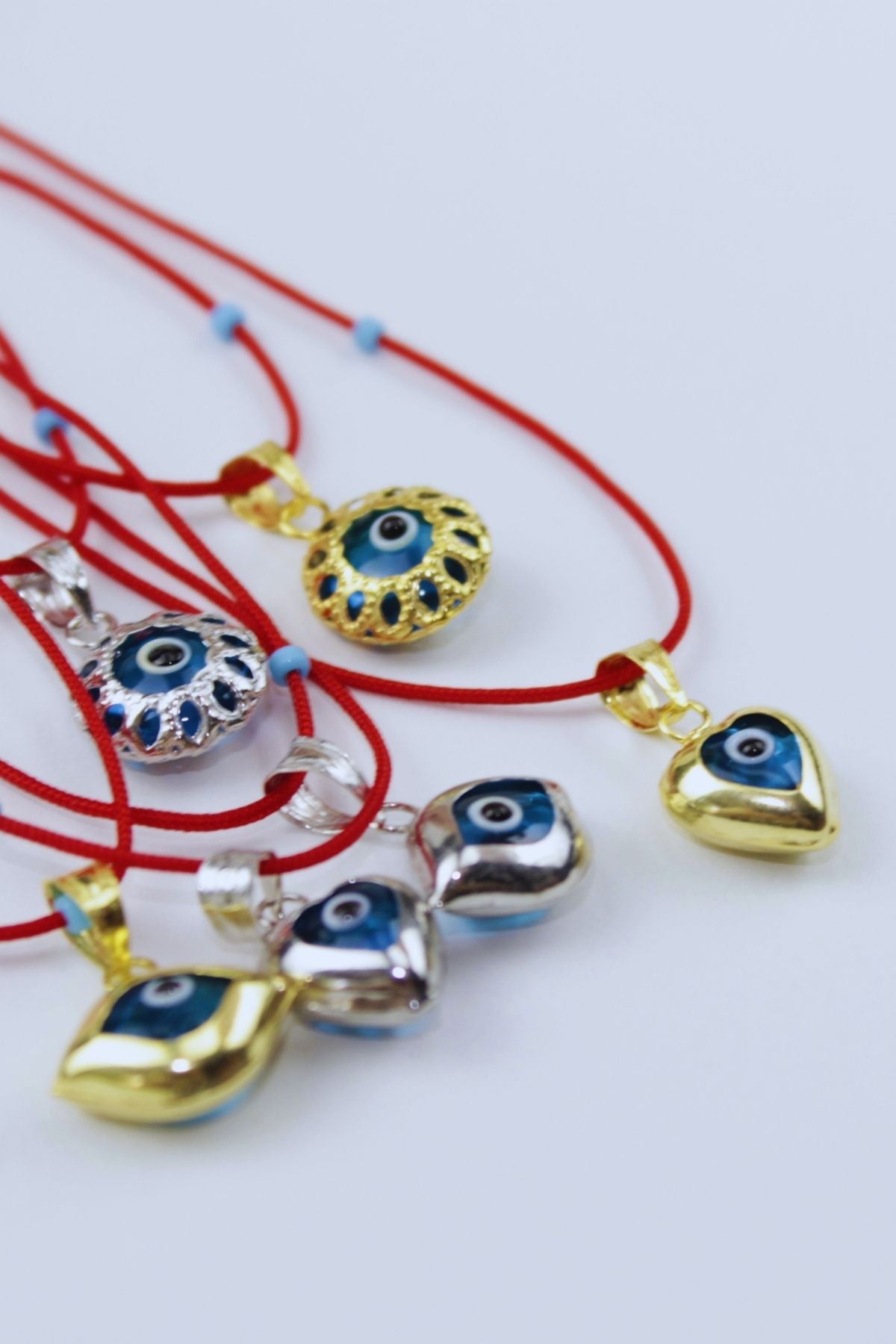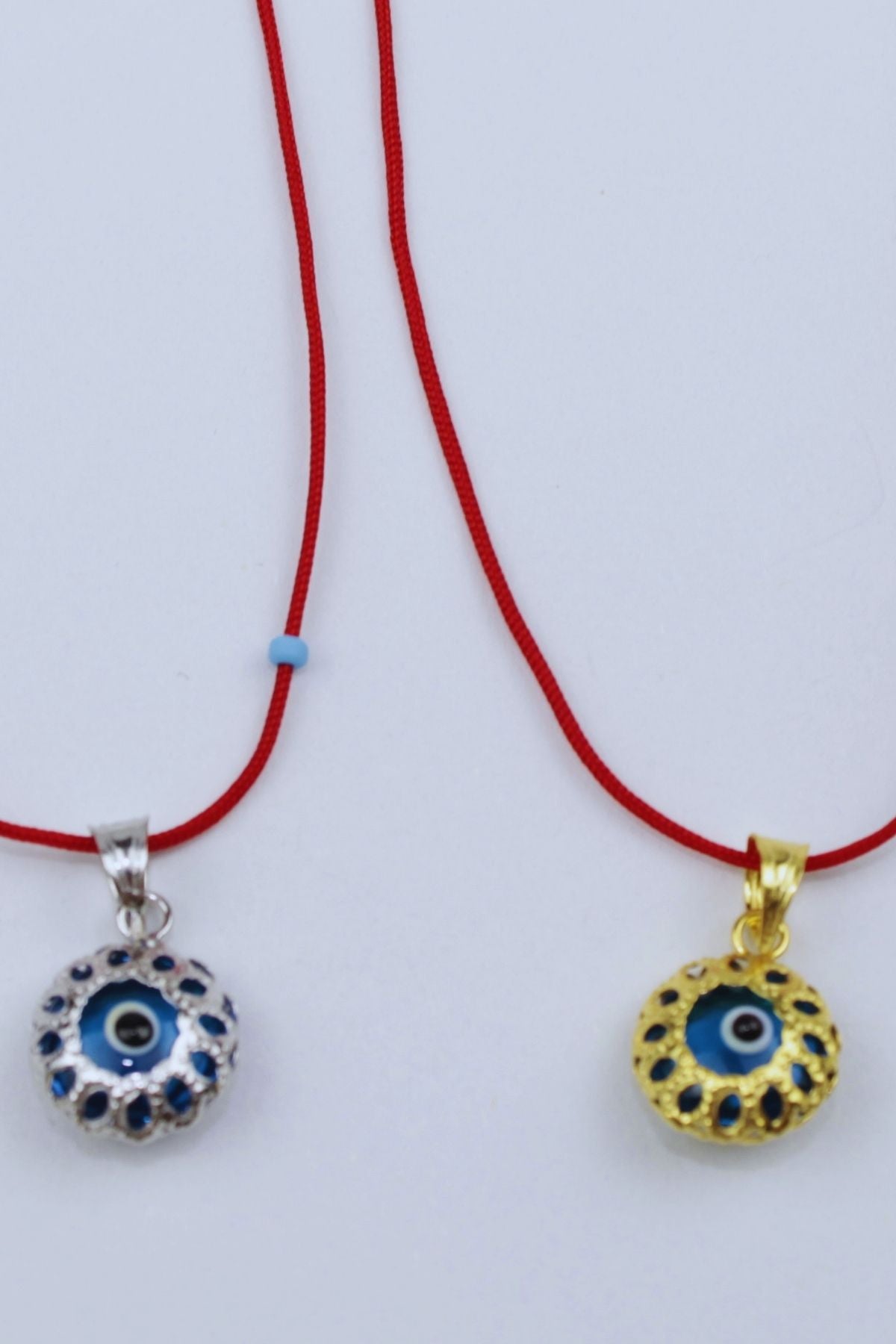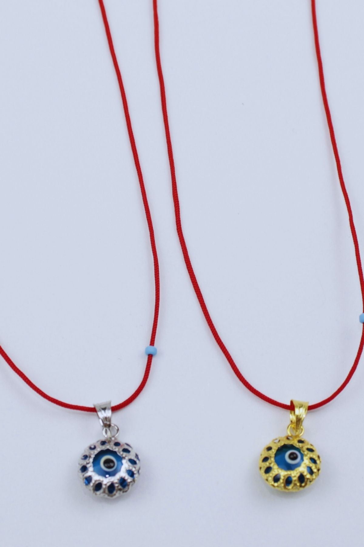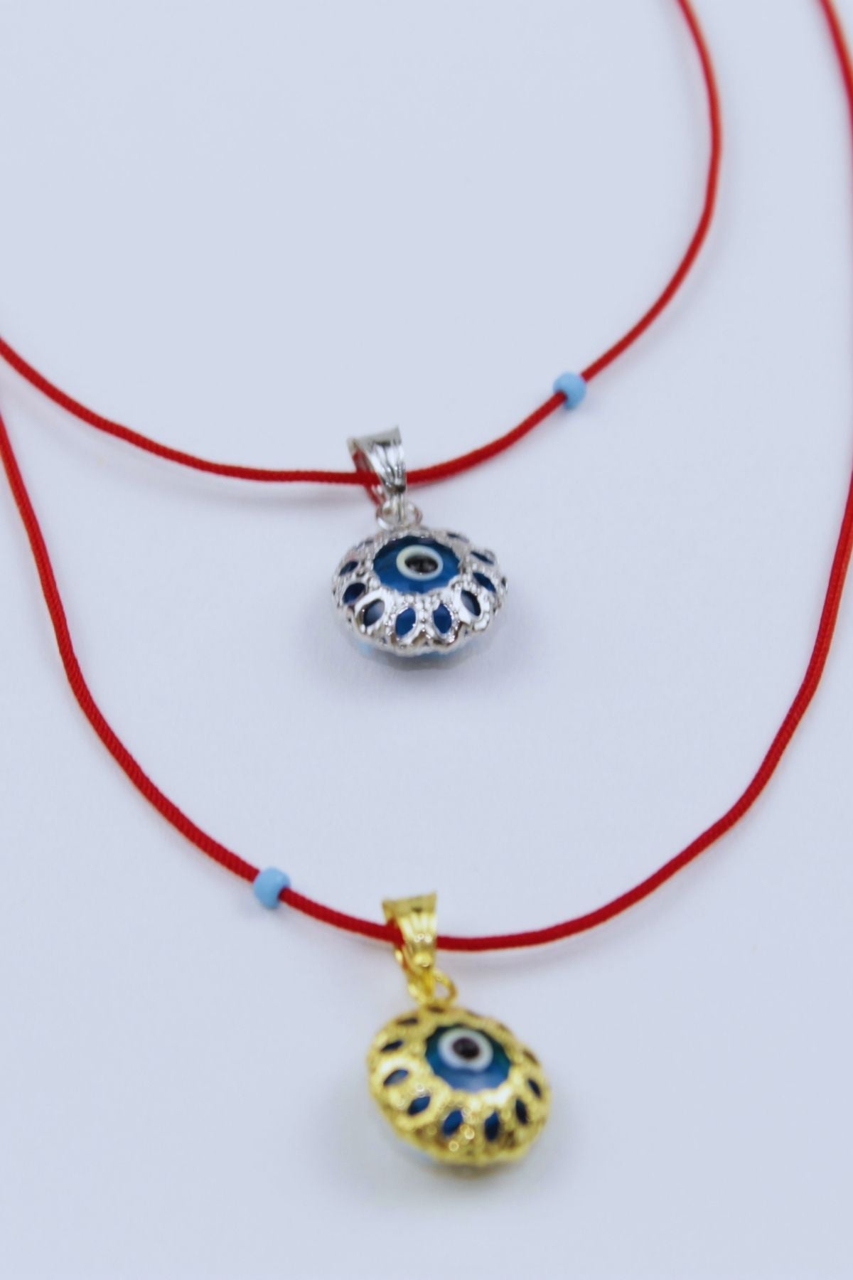 Kırmızı İpli Vintage Nazar Boncuğu Kolye / 925 Ayar Gümüş