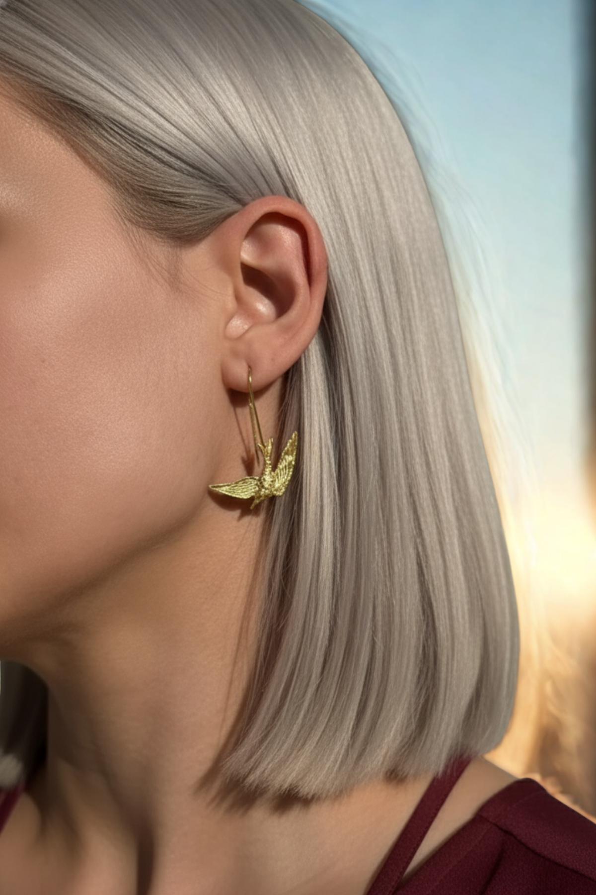 Kuş motifleri, özgürlük ve hafiflik duygusunu güçlü bir şekilde ortaya koyar; sade ama etkileyici bir duruş sunar.